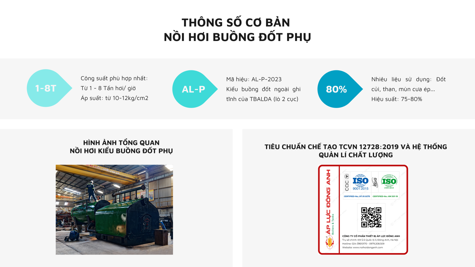 Các thông số cơ bản của nồi hơi buồng đốt phụ: