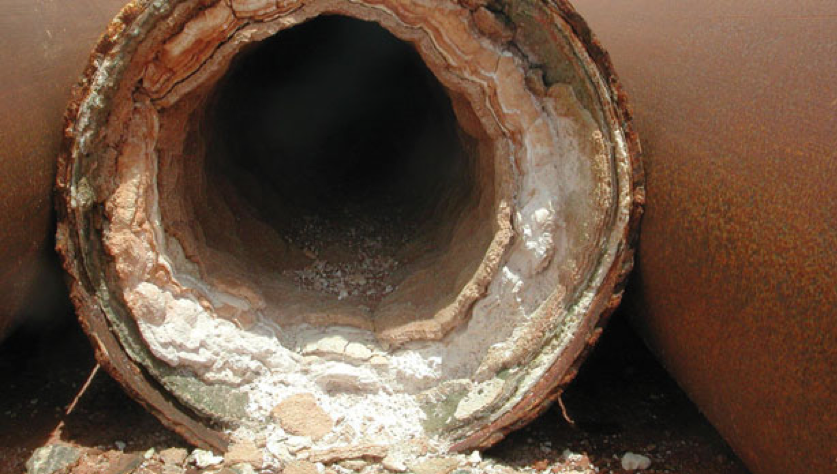 Hình ảnh minh hoạ cáu cặn bám kịt vào thành ống làm giảm hiệu suất trao đổi nhiệt